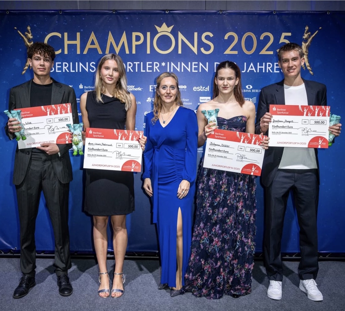 Sportnews 30.11.2025Mit Stolz dürfen wir verkünden: Bei der diesjährigen Wahl CHAMPIONS 2025 — Berlins Sportler*innen des Jahres — sind zahlreiche ausgezeichnete Athletinnen und Athleten aktuelle oder ehemalige Schülerinnen oder Schüler des SLZB..
